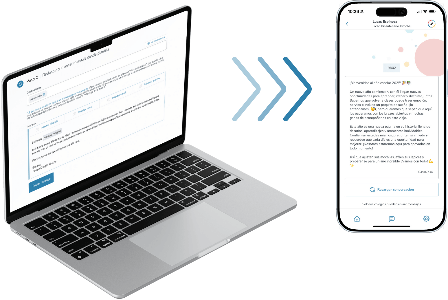 Plataforma centralizada que envía mensajes directo a los apoderados, estudiantes y docentes. Elimina los grupos de WhatsApp de tu colegio.