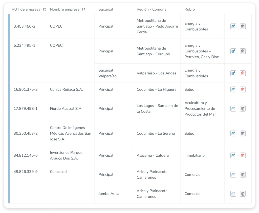 - Actualiza y edita empresas sin perder historial.