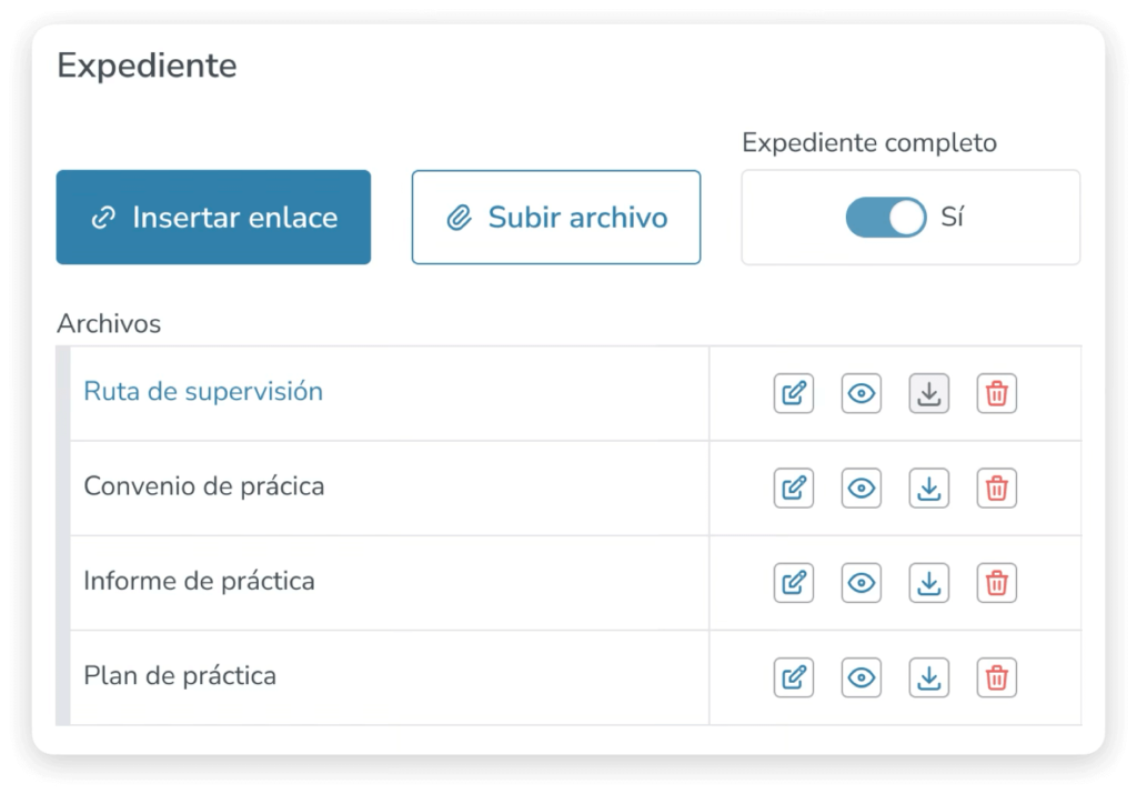 - Marca el expediente como Completo / Incompleto según los requisitos del colegio.