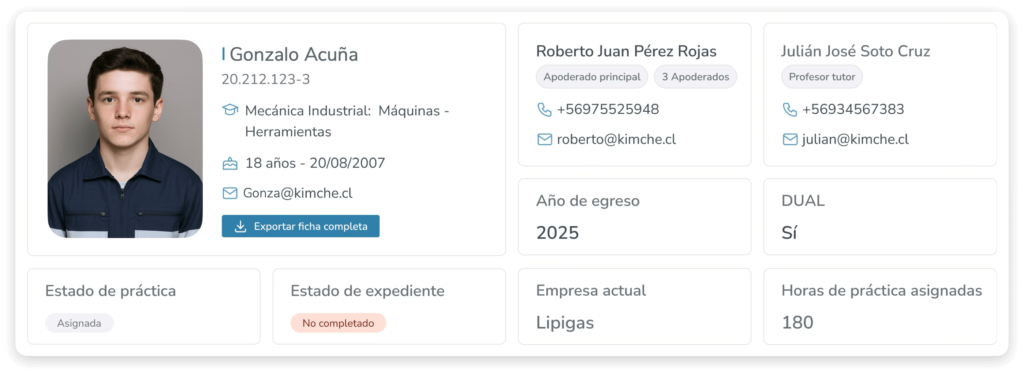 Sin embargo, hoy la mayoría de los colegios gestiona este proceso con planillas, carpetas físicas y seguimiento manual, lo que dificulta la trazabilidad y la gestión de los estudiantes en práctica. La titulación Técnico-Profesional, además, es un indicador clave de la gestión de las escuelas TP, pues refleja su capacidad para acompañar a los egresados hasta el logro efectivo del título.